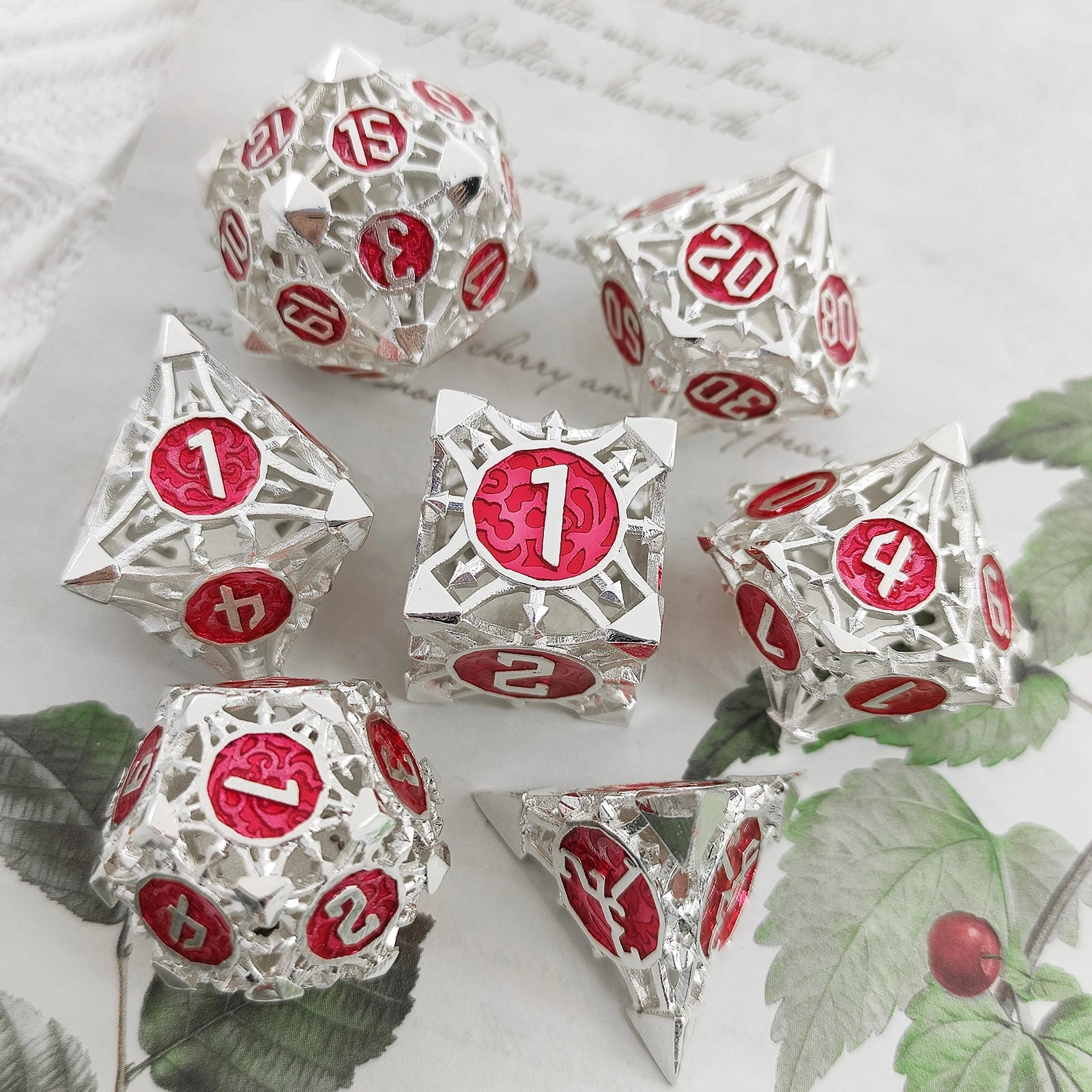 Materiál: Naše kostky jsou vyrobeny z prvotřídního kovu a slibují výjimečnou odolnost a přesnost. Pociťte váhu každé kostky ve své ruce, což je důkazem kvality a řemeslného zpracování, které je součástí každého kusu.